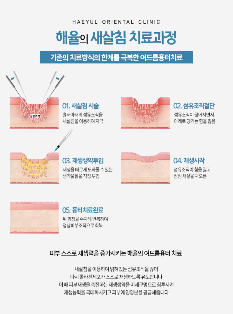 얼굴에 흉터가 생기는 이유는 다양하며, 흉터가 남는 것은 거울을 볼 때마다 감추고 싶은 것입니다.부평의 함몰된 흉터는 침치료로 깔끔하게 채워드립니다