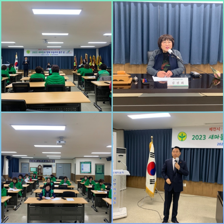 <(사)제천시새마을회, 중국발 코로나19 엔데믹(endemic) 대응-우수 읍면동 시상식/일상의 회복을 위한 기도 2023년 환송식터키·시리아 지진구호 성금 500만원 전달 및 제천시 새마을부녀회 2월 월례회 / 김진희 회장, 15일 포라리 제천본사 초청 특별행사 참석 감사 및 의림지동새마을회 합동회 & 구제천시 새마을부녀회, 제천시 실버복지센터 급식 및 직장 새마을운동 제천시의회, 어려움에 처한 이웃 2023 사랑의집 1차수리&새마을책방 제천지점, 새마을작은도서관 14개소 고서분류 및 금성면 새마을회, 제천노인종합복지관 음식 서비스&신백동새마을회, 제천종합사회복지관 음식 서비스>