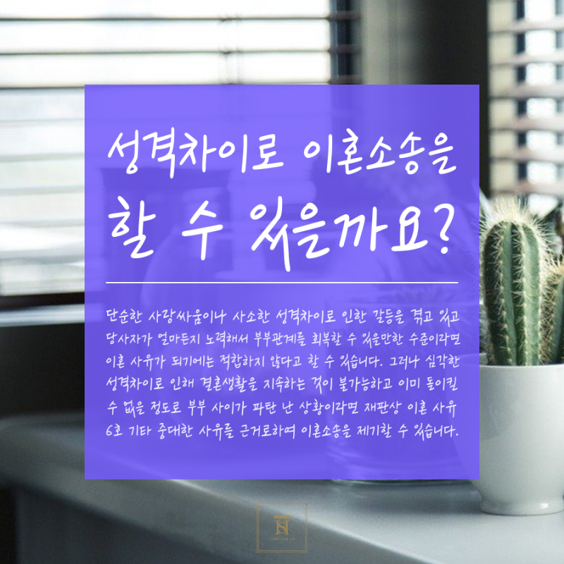 성격차이로 인해 결혼 생활에 갈등이 생겨 합의이혼이 되지 않는다면 합의이혼은 불가능하다고 할 수 있습니다. 합의이혼이 되지 않으면 이혼소송만 할 수 있는데, 성격차이가 이혼사유가 될 수 있느냐 하는 문제가 애매모호하다. 상황에 따라 이혼 사유가 될 수도 있고 안 될 수도 있습니다. 단순한 사랑싸움이나 미묘한 성격차이로 갈등이 생기고, 당사자들이 혼인관계 회복을 위해 노력을 아끼지 않을 수 있는 수준이라면 이혼사유로 적합하지 않다. 다만, 성격차이가 심하여 혼인생활을 지속할 수 없고, 돌이킬 수 없을 정도로 관계가 파탄된 경우에는 재판상 이혼사유 제6조 기타 중대한 사유에 의거하여 이혼절차를 밟을 수 있습니다. 배우자가 뻔뻔스럽게도 재산분할이 안되고 위자료도 안준다고 해도 법원에서 재판을 통과해서 공정한 판결을 받을 수 있으니, 재산분할법에 따라 해결을 할 수 있어야 함을 알려드립니다. 법.