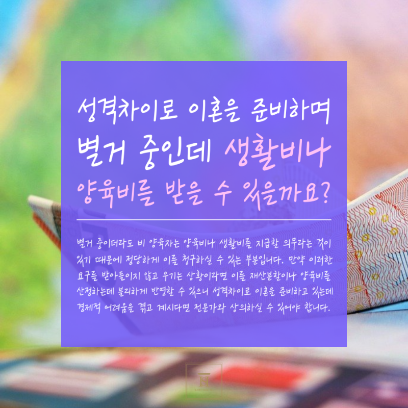 성격차이로 이혼을 준비할 때 누군가가 생활비나 양육비를 받을 수 있는지 조심스럽게 물어봤다. 직장도 없고 생활도 힘들어서 자녀와 이혼을 준비하시는 분들도 계실 텐데요. 그리고 이 기간 동안 배우자의 재정적 건전성에 의존해 왔다면 향후 취업이 더 어려울 수 있습니다. 이 경우 조기 압류를 통해 생활비나 자녀 양육비를 확보할 수 있습니다. 별거하더라도 비양육부모는 양육비와 양육비를 지급할 의무가 있으므로 이에 대한 법적 청구를 할 수 있습니다. 이 요구 사항을 수락하지 않으면 재산 분할 또는 자녀 양육비 계산에 부정적인 영향을 미칠 수 있습니다.