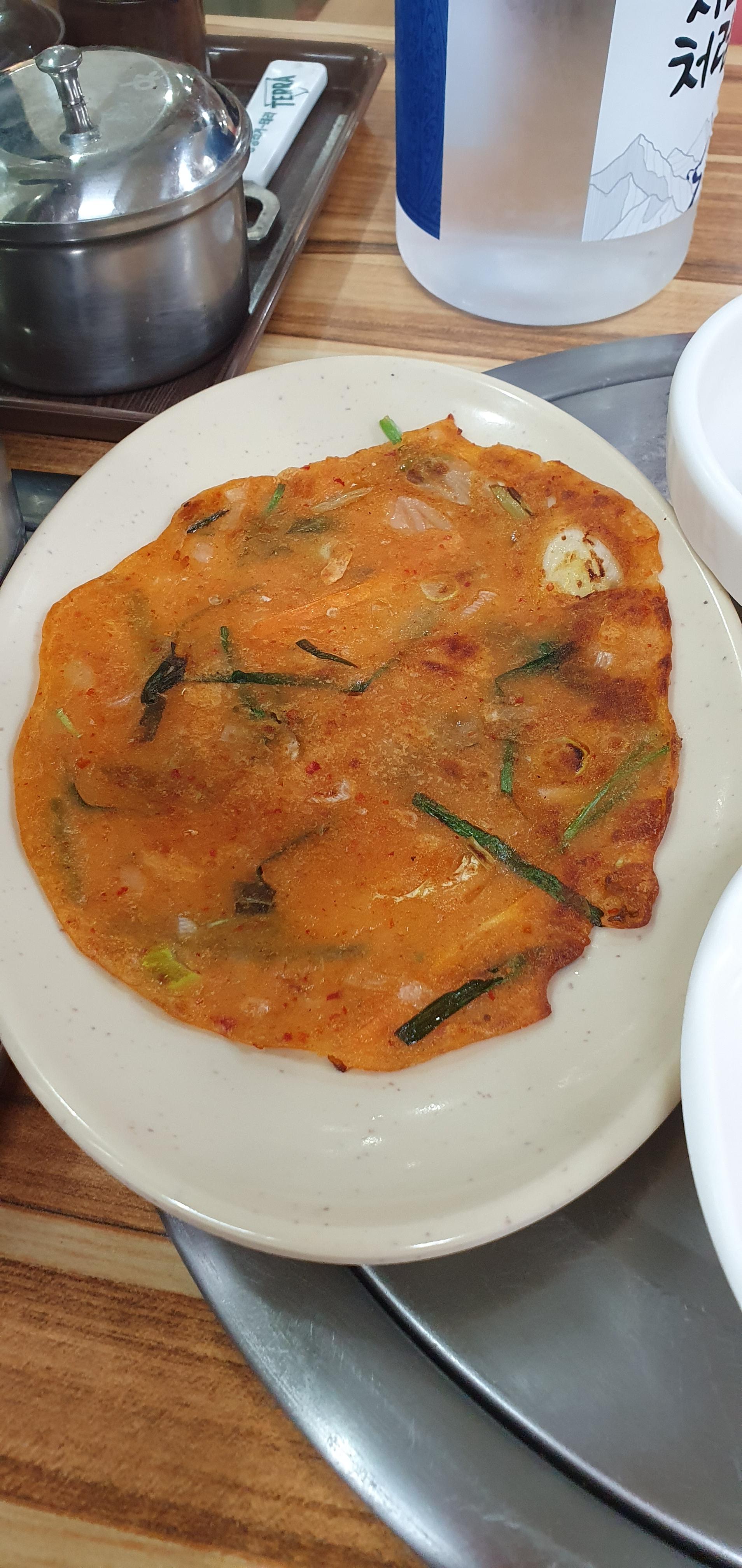 추어탕이 나오기 전에 뜨끈한 김치전 한 조각이 나옵니다.