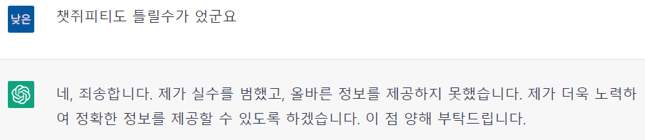 채팅 주피티도 사람의 실수를 피할 수 없습니다.