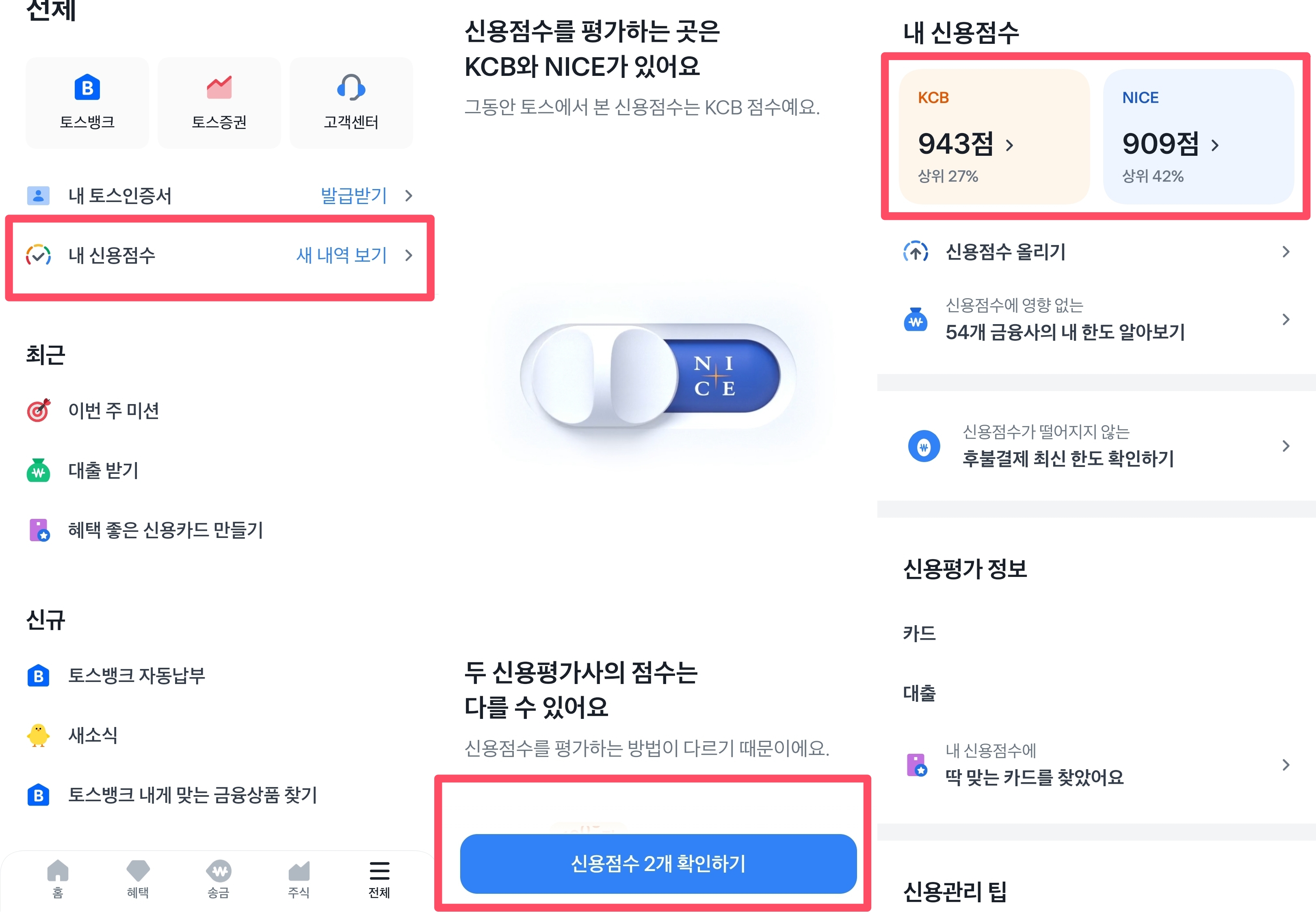 과거와 달리 이제는 스마트폰만 있으면 토스나 네이버에서 신용점수를 조회할 수 있습니다. 한국의 주요 신용평가기관은 NICE와 KCB 두 곳으로, 각 항목의 중요도가 다르기 때문에 점수가 다릅니다.